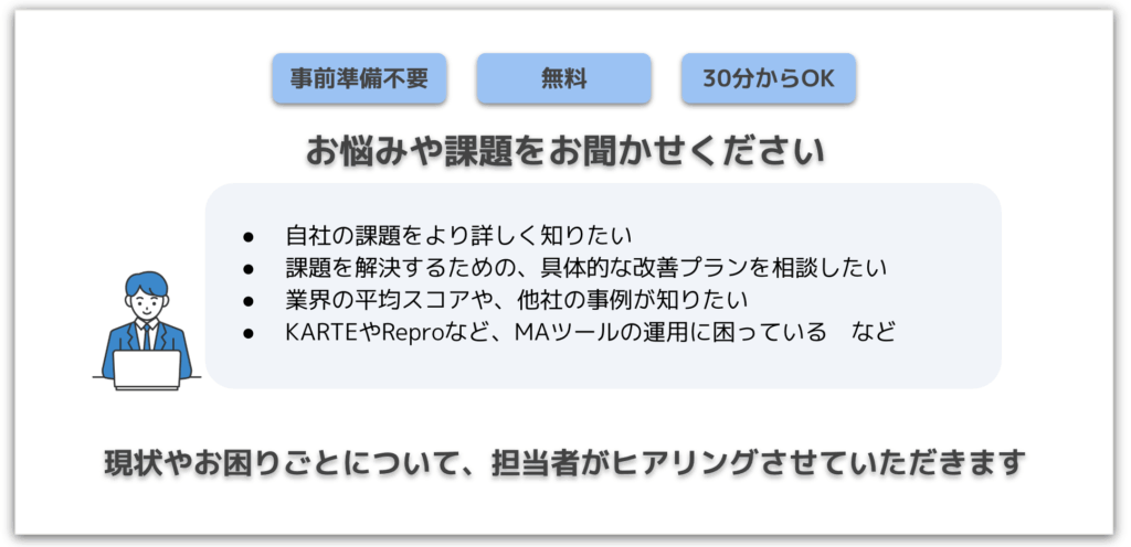 弊社の専門スタッフによる無料相談を受け付けております。LTV向上・CX改善にお困りの企業様は、ぜひ以下のフォームよりお気軽にご相談ください。
