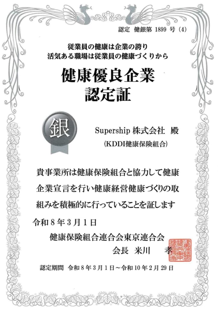 Supership、「健康優良企業・銀の認定」継続取得のお知らせ